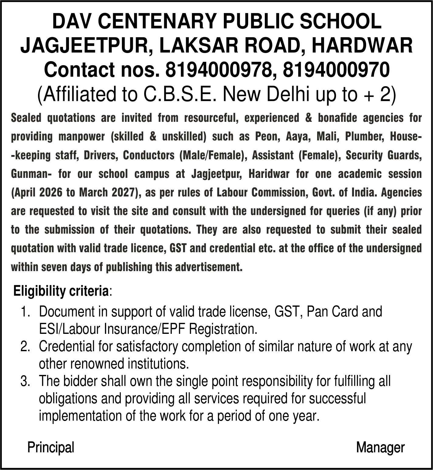INVITING TENDERS FOR PROVIDING MANPOWER