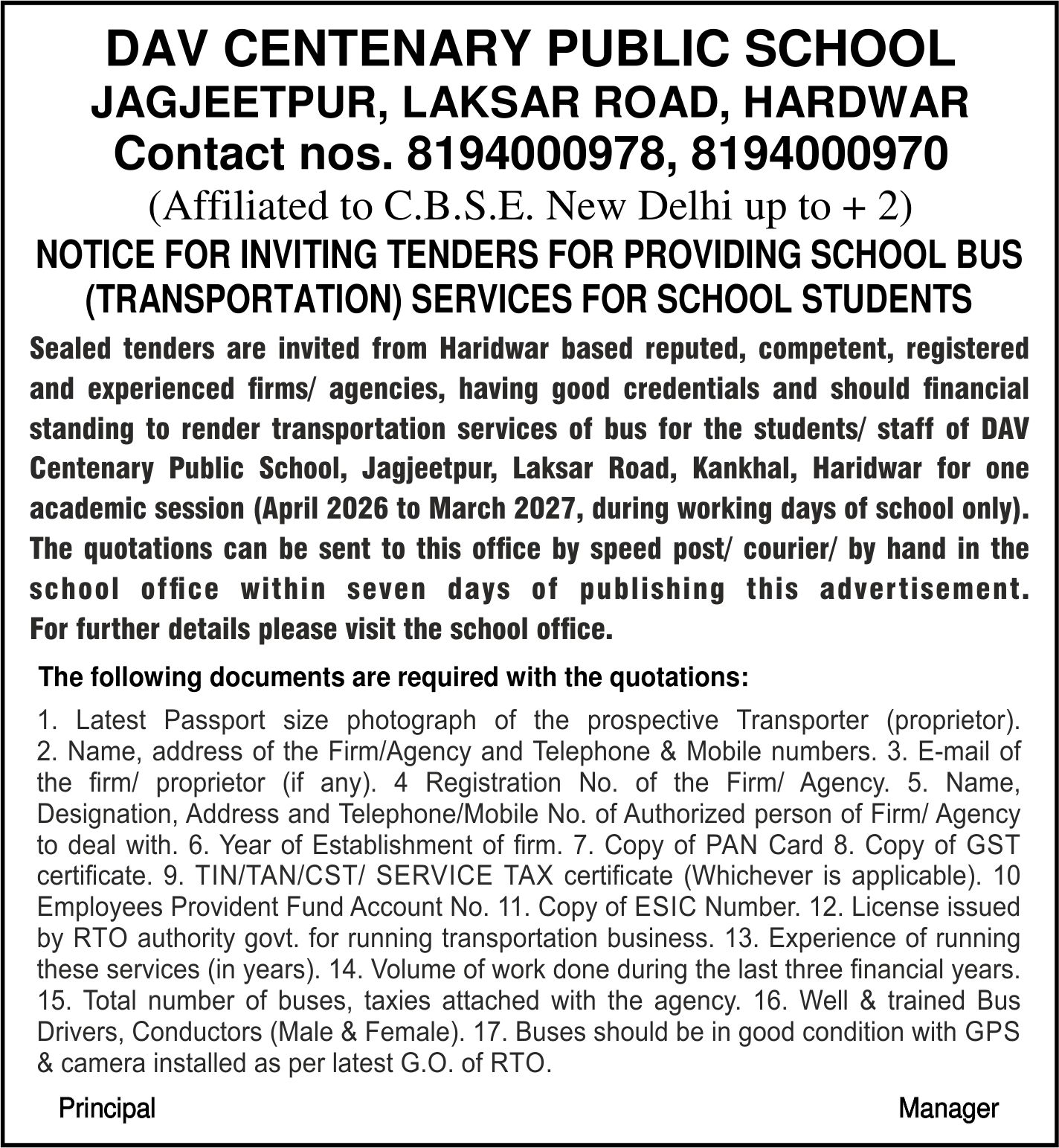 DAV Cent. Public School, Laksar Road, Jagjeetpur Kankhal Hardwar - (Uttaranchal) Phone : 8194000970, 8194000978 E-Mail : [email protected]